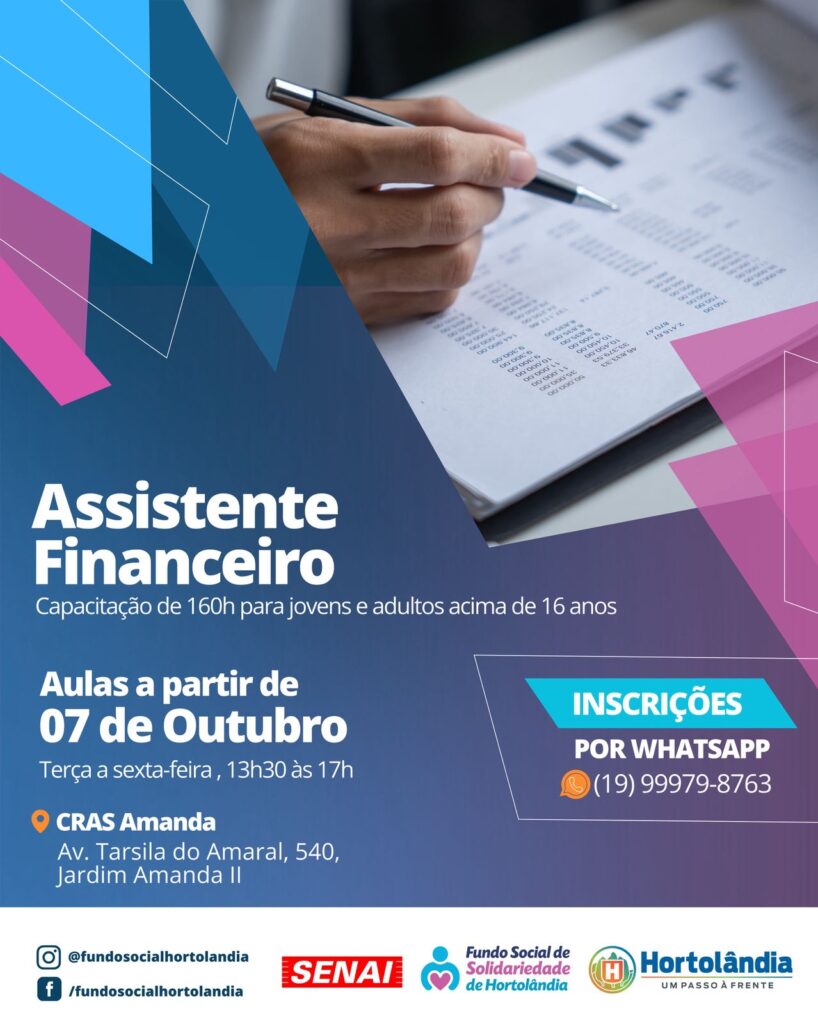 “Curso de Assistente Financeiro” (160h/a) – em parceria com o Senai (Serviço Nacional de Aprendizagem Industrial)