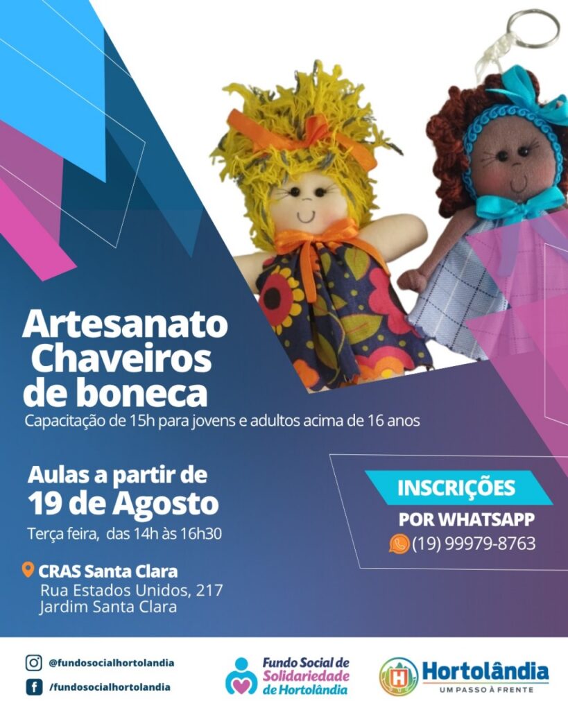 Artesanato: chaveiros de boneca (15 horas) – Inscrições neste link