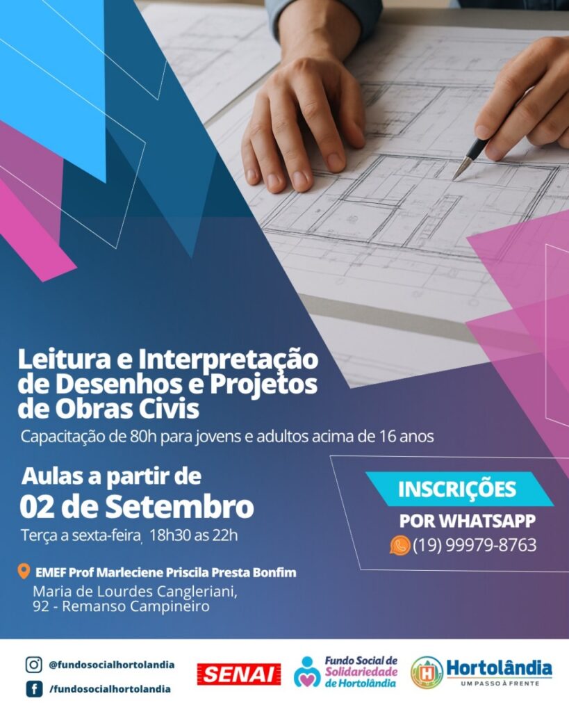 Podem se inscrever moradores de Hortolândia, jovens ou adultos com idade a partir dos 16 anos. Os links para inscrição estão disponibilizados abaixo. Dúvidas podem ser elucidadas pelo telefone (19) 99979-8763.
