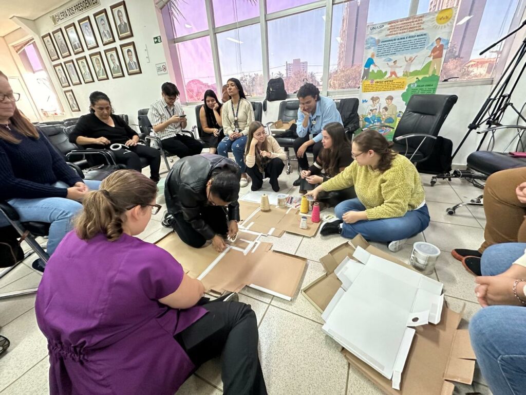 Para que as equipes de saúde saibam como estimular as crianças a praticarem atividades lúdicas, a formação teve uma oficina que ensinou a criar brinquedos com materiais recicláveis.