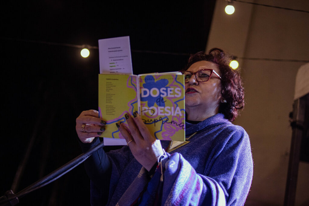 Entre uma recitação e outra de seus versos, o poeta abriu espaço para os novos livros “Brilhante escuridão atenuada”, de David Rodrigues Silva Neves, e “Doses de poesia suprema”, de Rozana Gastaldi Cominal.